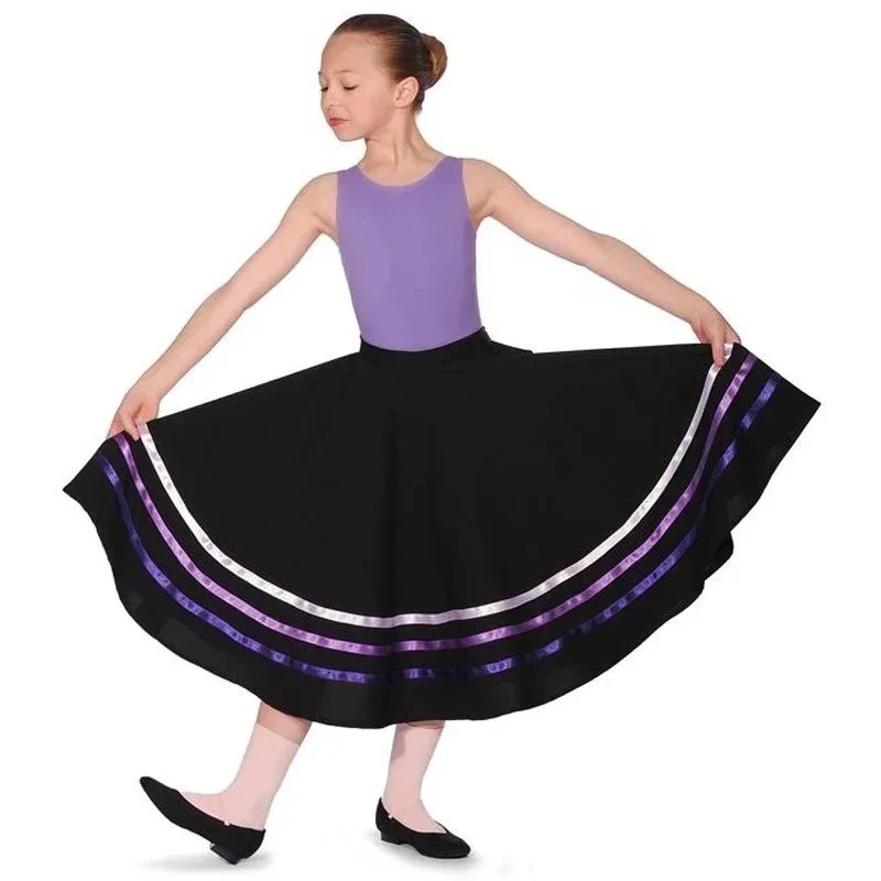 Black Character skirts with 3-ribbon Pastels trim suitable for RAD examinations - measure waist and length is tummy button to mid calf